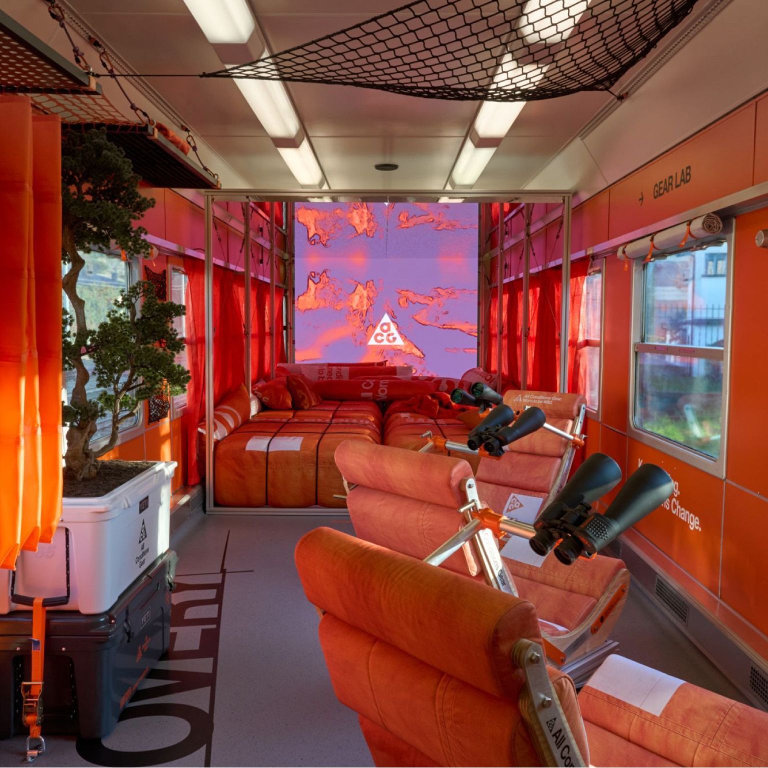 ACG has taken advantage of the celebration of the Winter Olympic Games in Milan and Cortina d’Ampezzo to communicate the relaunch. There it activated the All Conditions Express, a branded train that left Milan’s central station to Pian dei Resinelli, a town near Lake Como. Designed by Nike’s internal team, each car has been conditioned to convey the brand’s adventurous spirit and its proposal for outdoor sports.