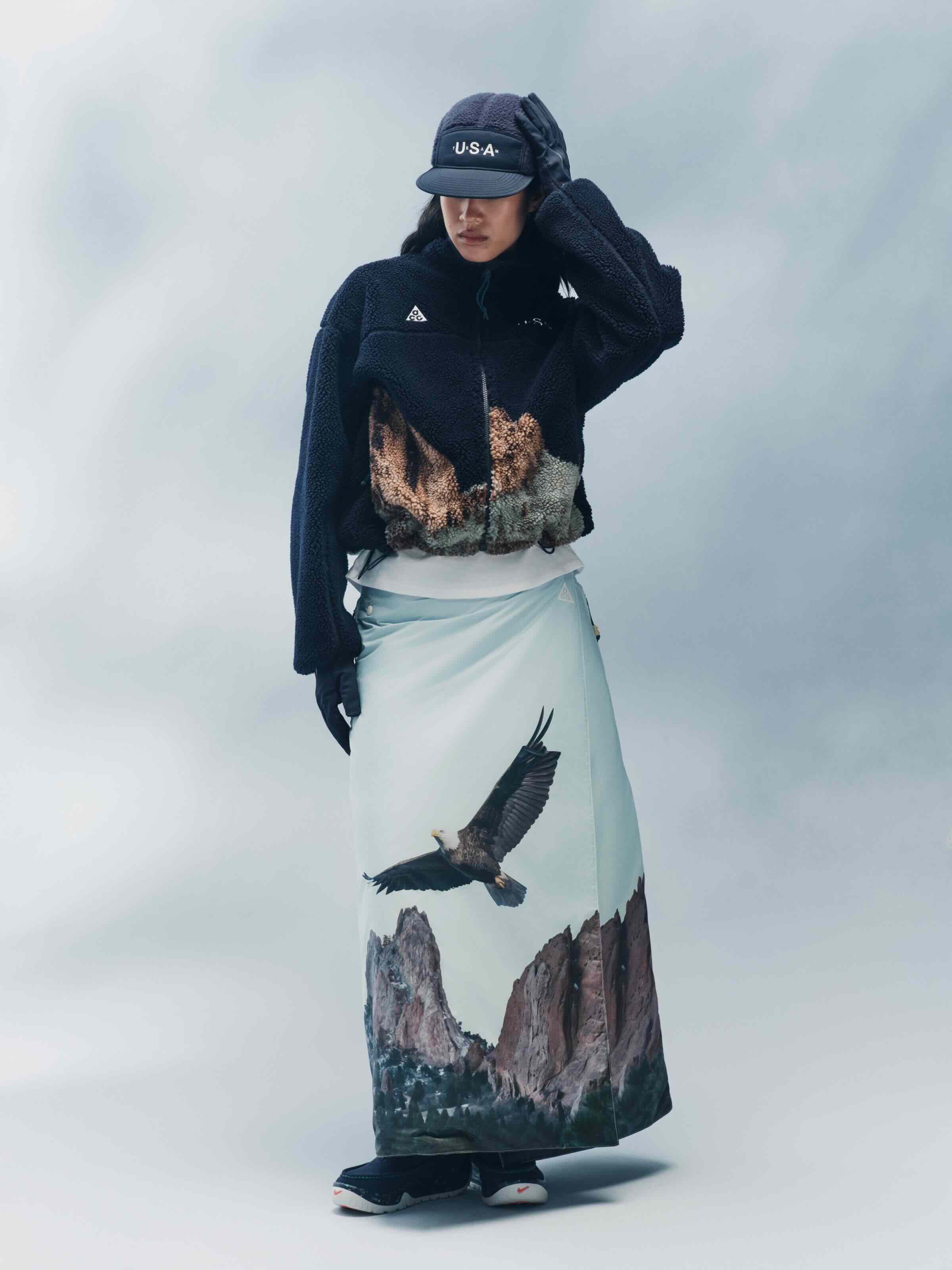 The core pieces of the collection are the Therma-FIT Air Milano jacket, which allows each athlete to adapt thermal control according to conditions; and the reversible Therma-FIT ADV skirt, inspired by the mountains of Colorado and designed to be worn alone, layered, or even as a blanket to sit on. Also worth noting are the new ACG Ultrafly, a high-performance shoe model.