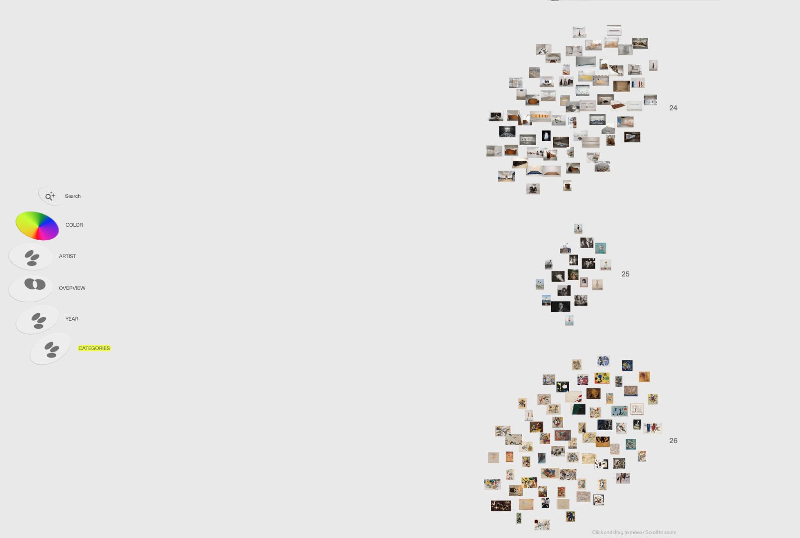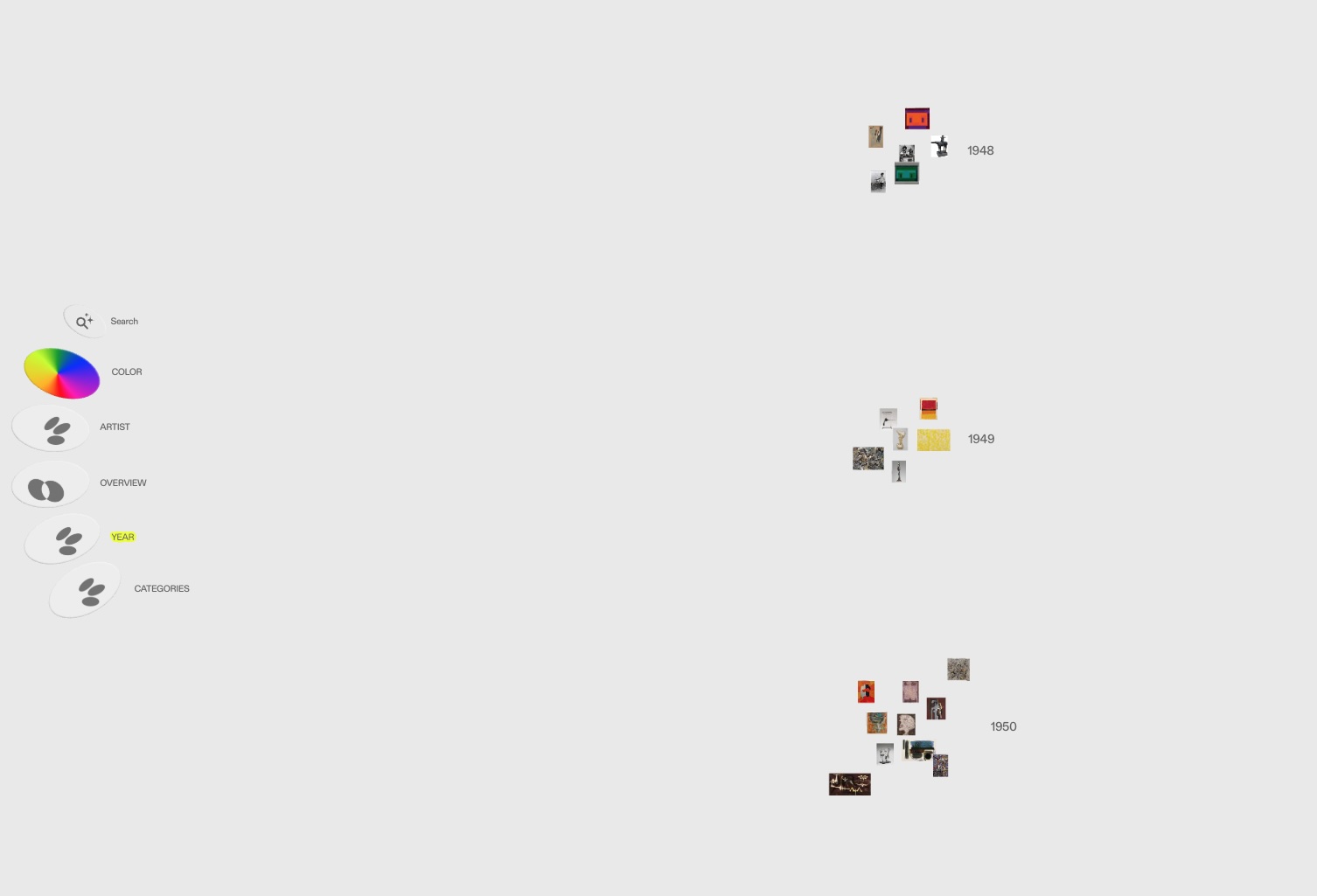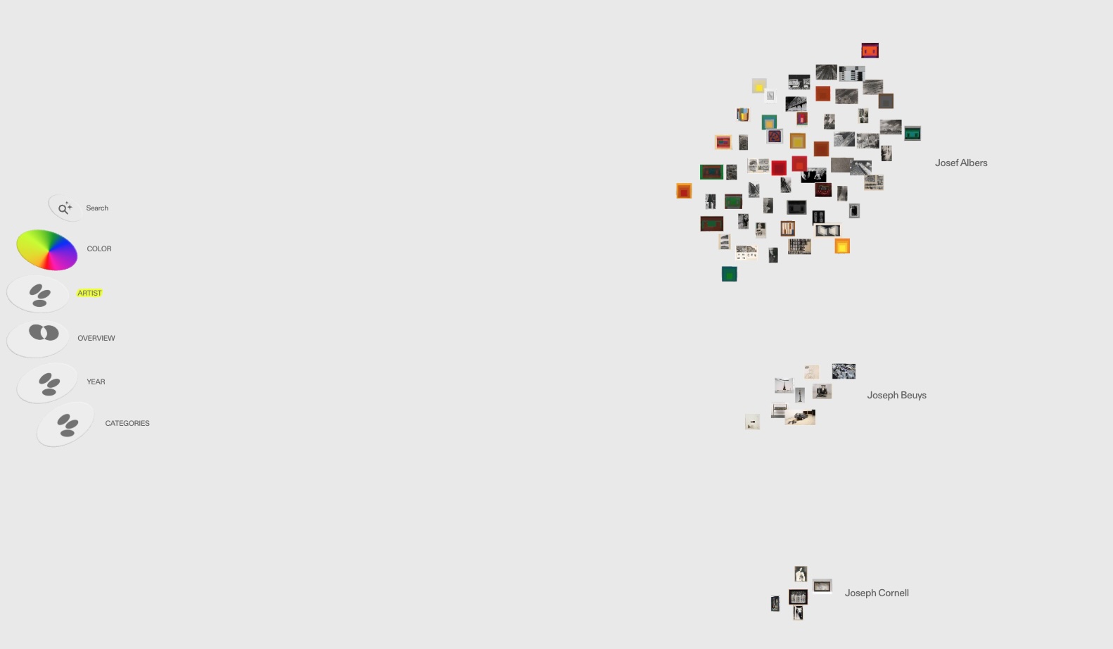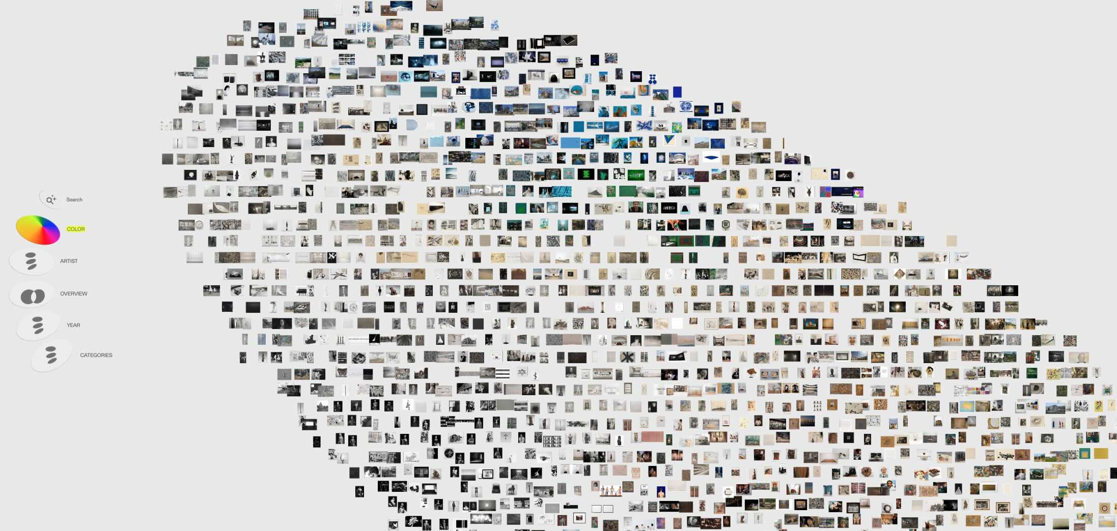 Soot’s proposal is difficult to explain with words, but a visit to the map created by the Guggenheim Museum in New York helps discover the vision of the platform. In this case, the different works are presented in a general view created by the institution, but can be ordered by color, year or artist.