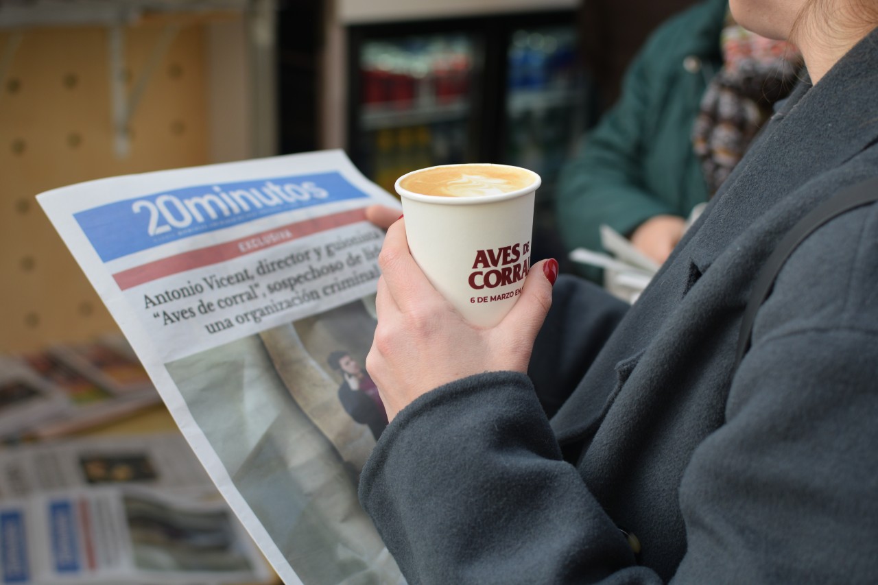 The film “Aves de corral”, director and screenwriter Antonio Vicent’s debut feature, has resorted to an urban activation in Madrid to gain visibility before its theatrical release on March 6. The action is structured around an intervention in the printed edition of the newspaper 20 minuteswhose cover simulates a news story in which the filmmaker himself appears as a suspect of leading a criminal organization, in a direct nod to the film’s plot.