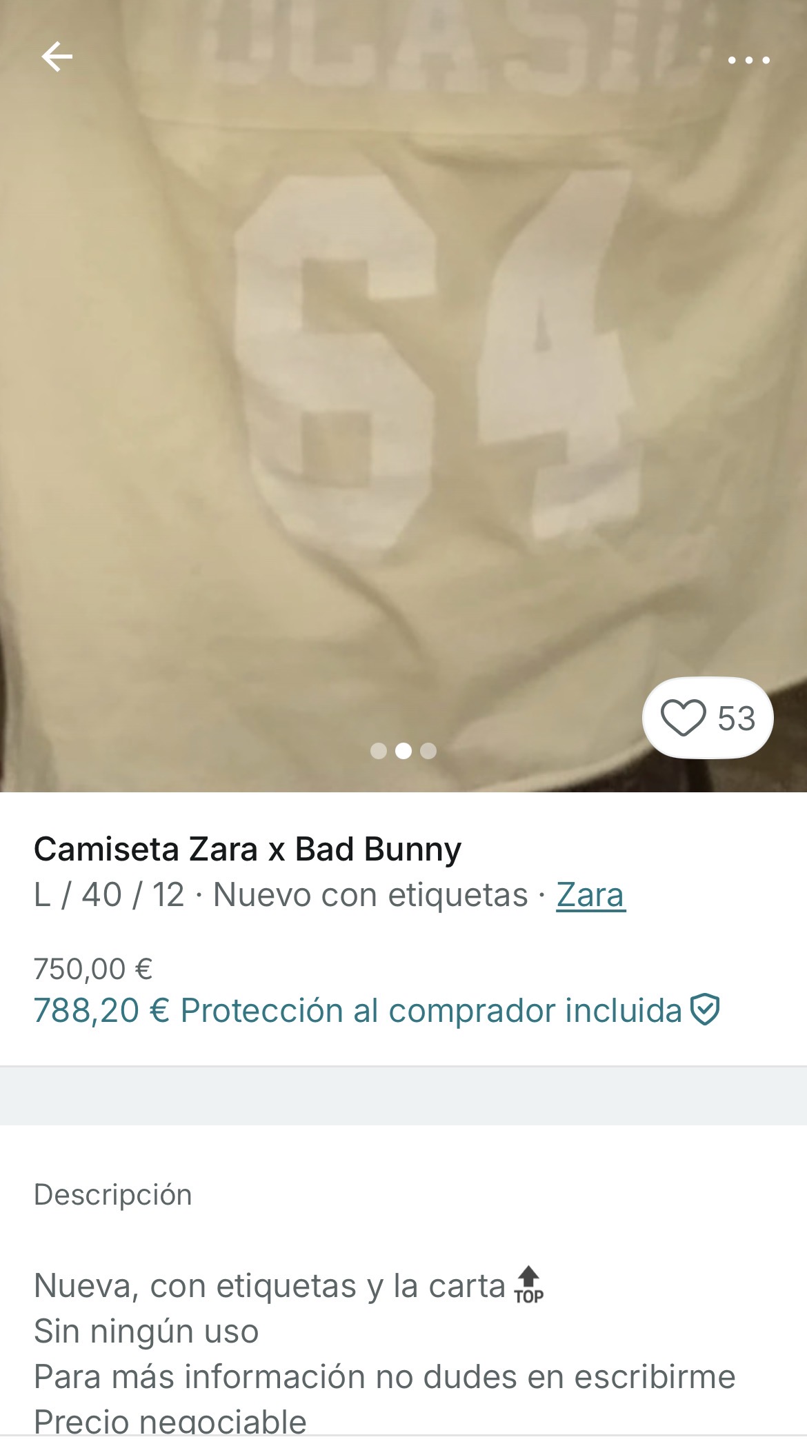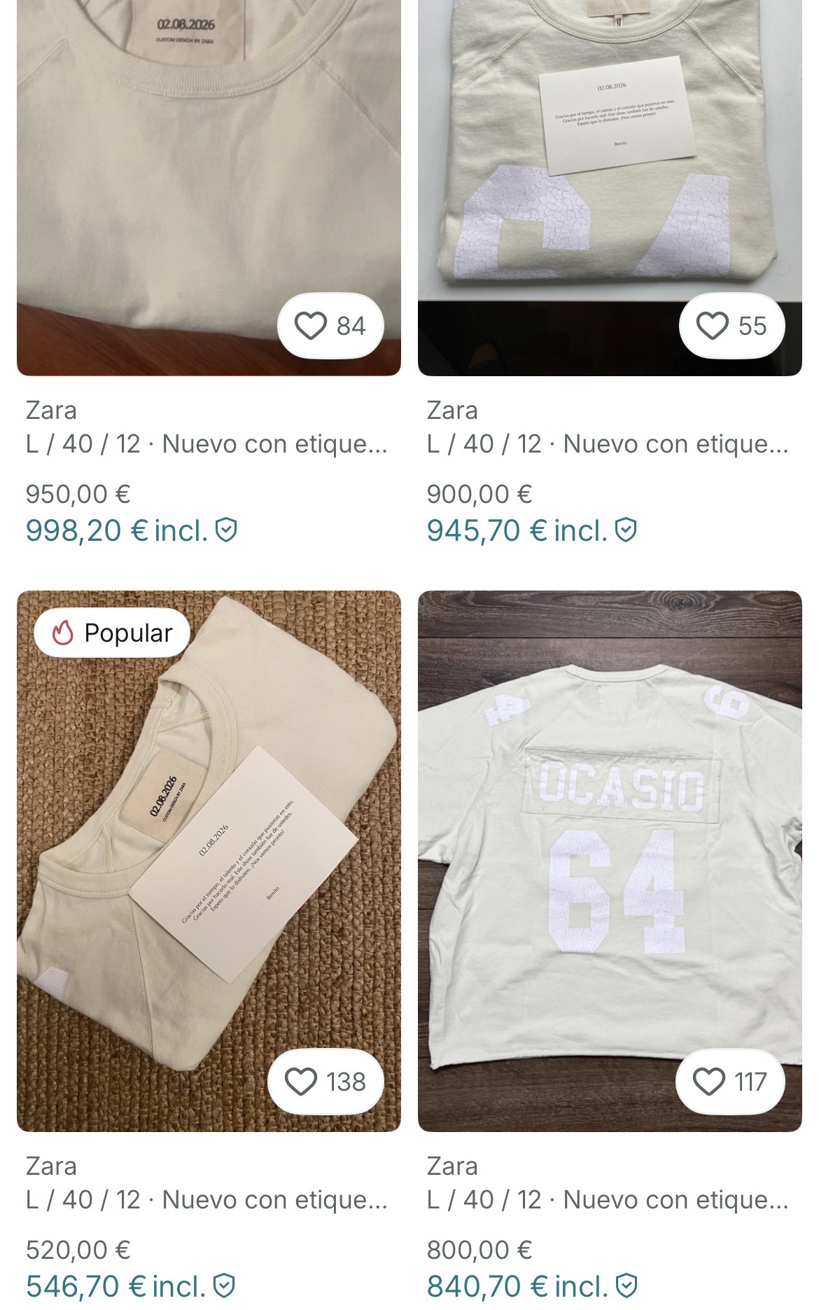 The average price they request is around €1,000, although there are some that have published the garment at a price of less than €600, while others raise it to €30,000. With this move, Zara employees who have put their t-shirts on sale hope to capitalize on the fact that they are practically unique items and are not sold in the brand’s store, either online or physically. In fact, some ads include the letter for sale along with the t-shirt.