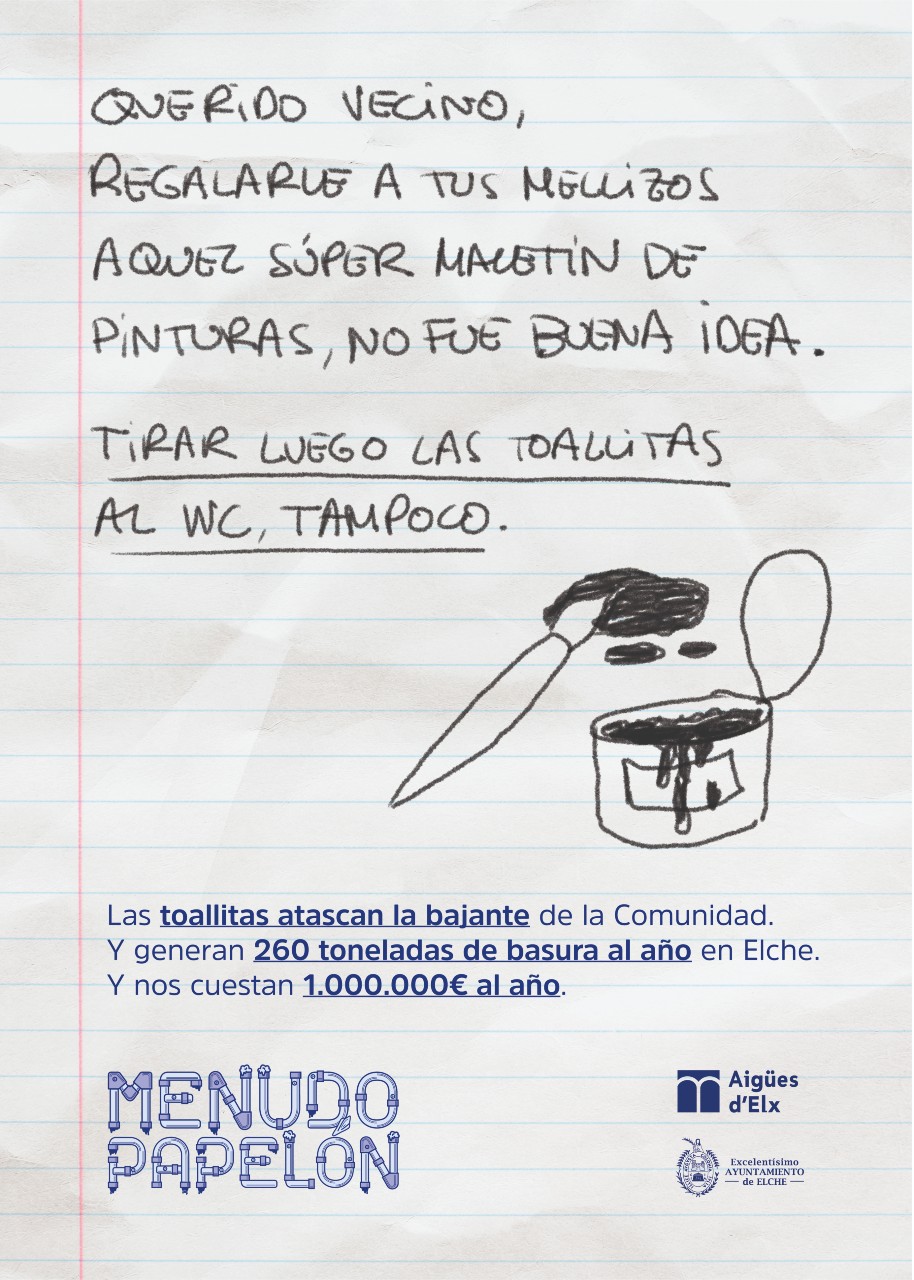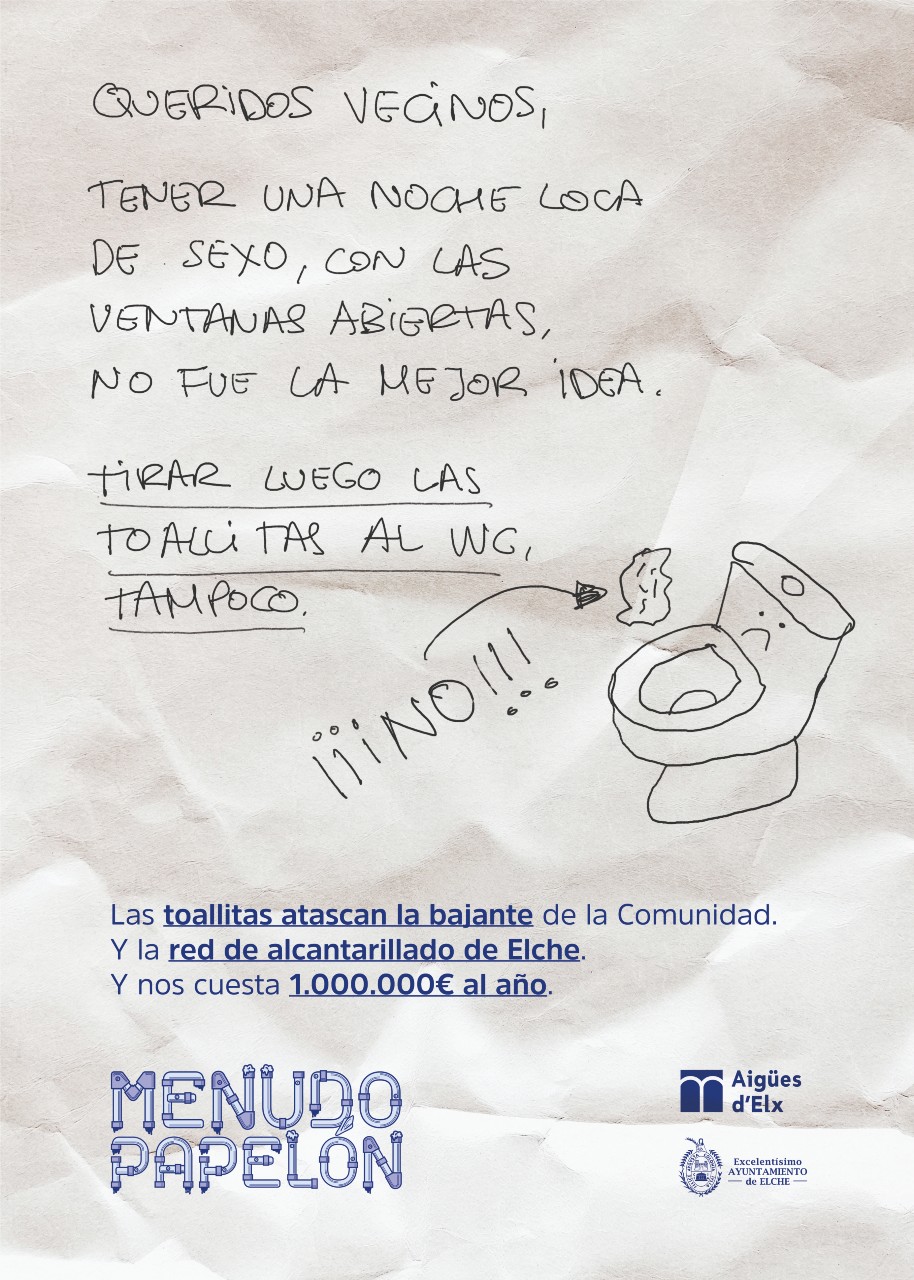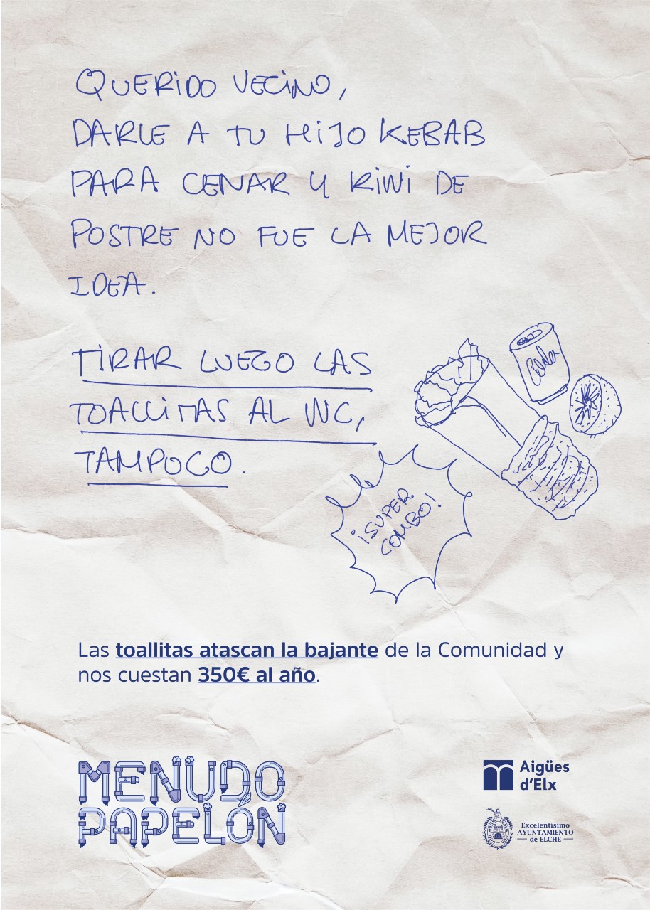 This is one of the messages that are expressed in the “often Paper” campaign, promoted by Aigües d’Alx, to raise awareness about the consequences of discarding wet wipes by the toilet.